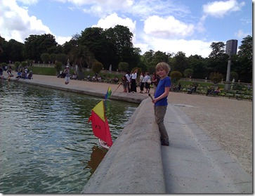 Later we walked to the Luxembourg Gardens which is several blocks from our apartment. We rented two boats the boys could push around with sticks. This was a huge hit and they didn’t want to return the boats when their half hour was up.
