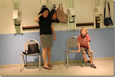 Anyway, we found the pool, and paid for our tickets to enter. But then I was stumped. I looked for the changing rooms, but there was only one set of double doors that were wide open. There were lockers and benches and the floor was tile and damp, but there were men in there, so I passed it (glad that I hadn’t passed the door when they were actually changing.) After I walked around a bit and found no other doors, we returned to the first set of doors. A bemused pool worker, who was stationed at the doors, asked if we wanted to swim and took our tickets. It was then I noticed that there were men and women in the room ahead. And we were obviously meant to go in there.